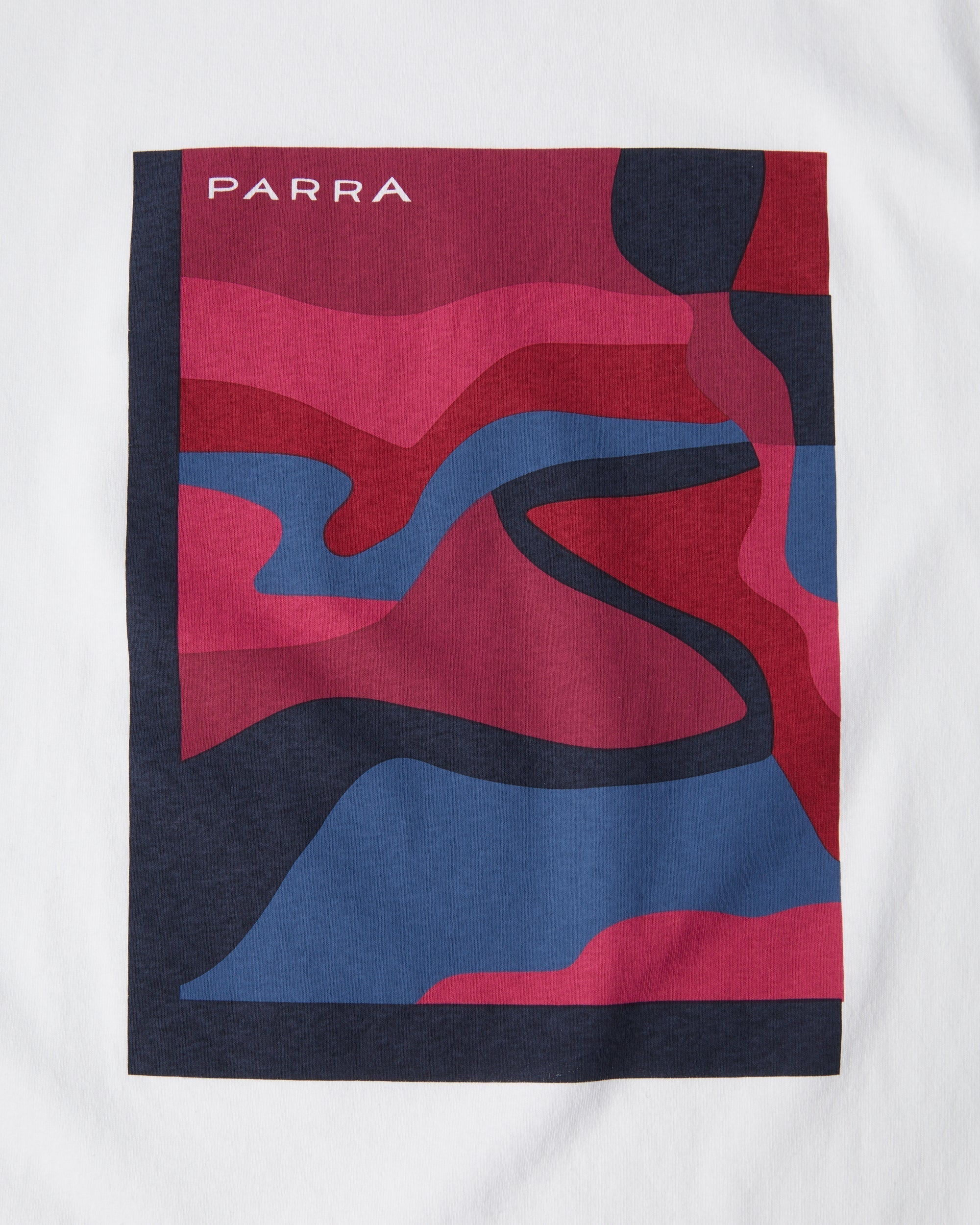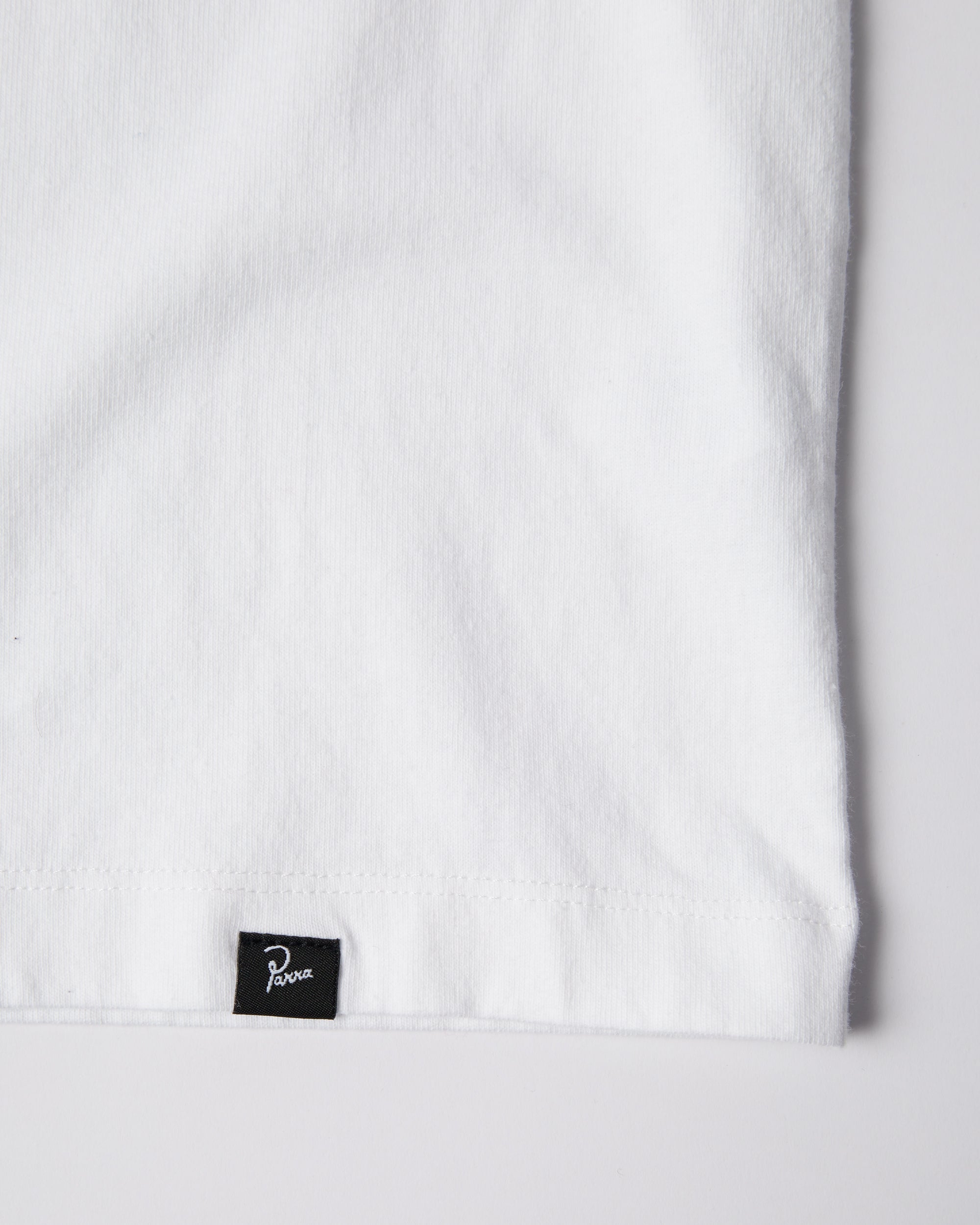 「Ftp booster」のアートワークをフロントに水性スクリーンプリントで施しています。すべてのParraのTシャツはボクシーカスタムフィットです。