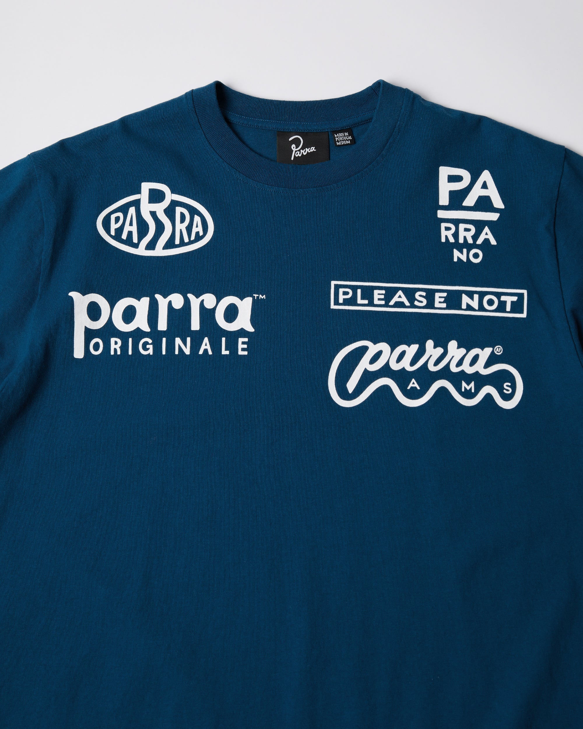 さまざまなParraロゴを組み合わせたデザインを、抜染プリントの上から水性スクリーンプリントで施しています。