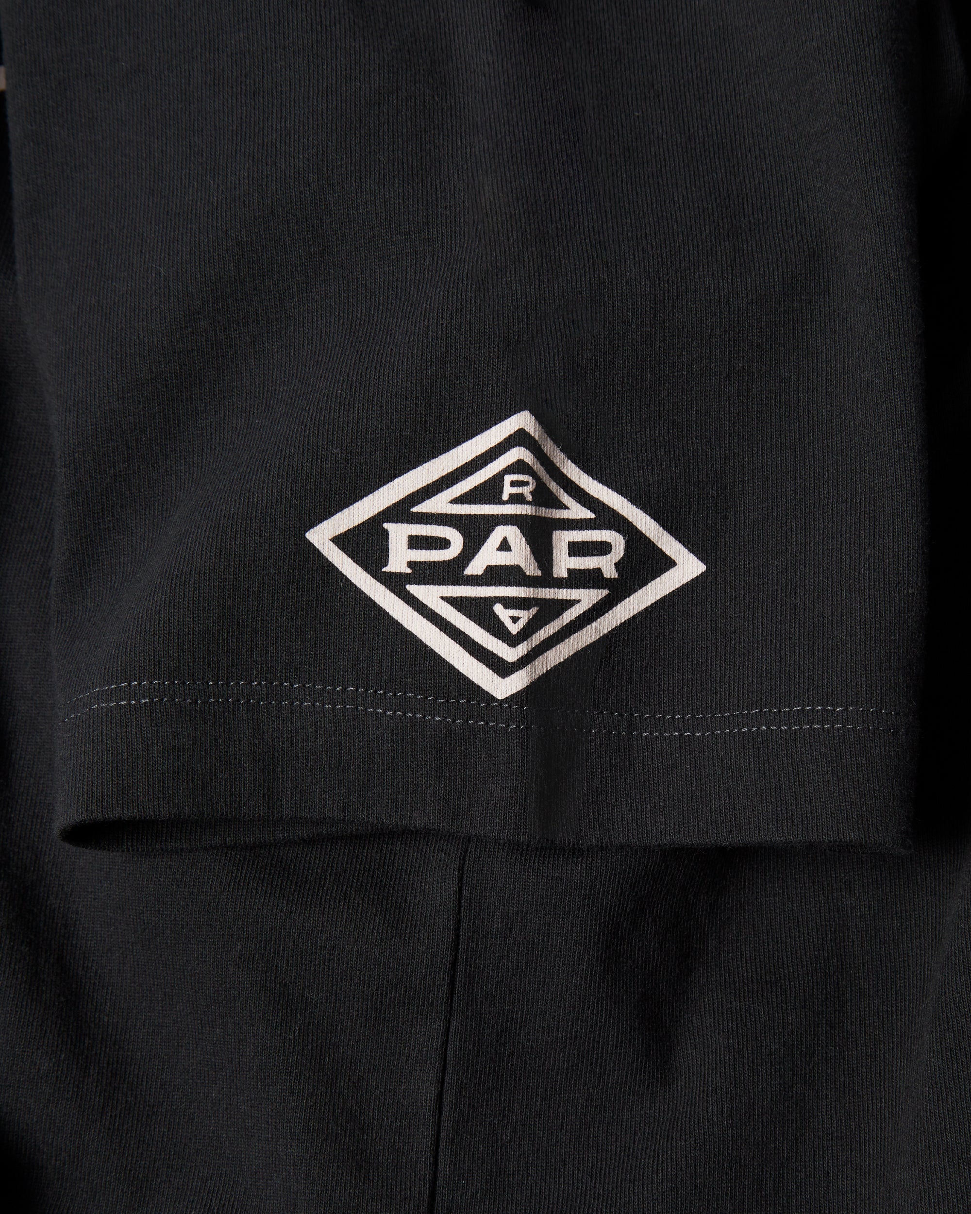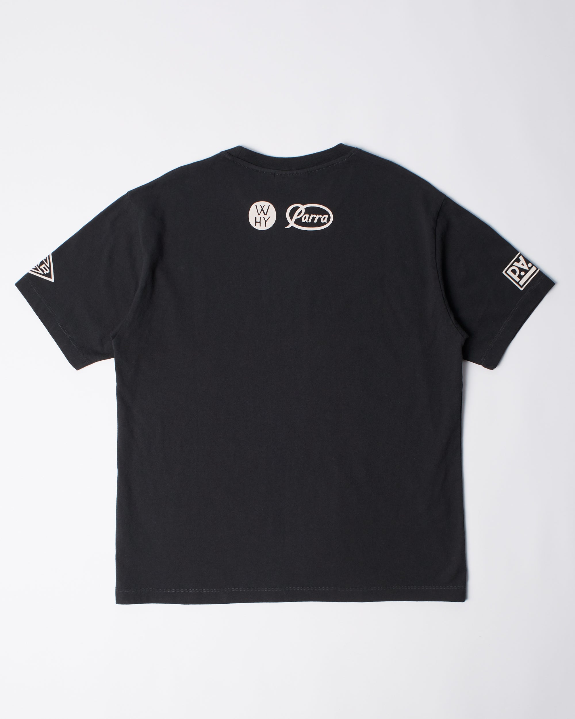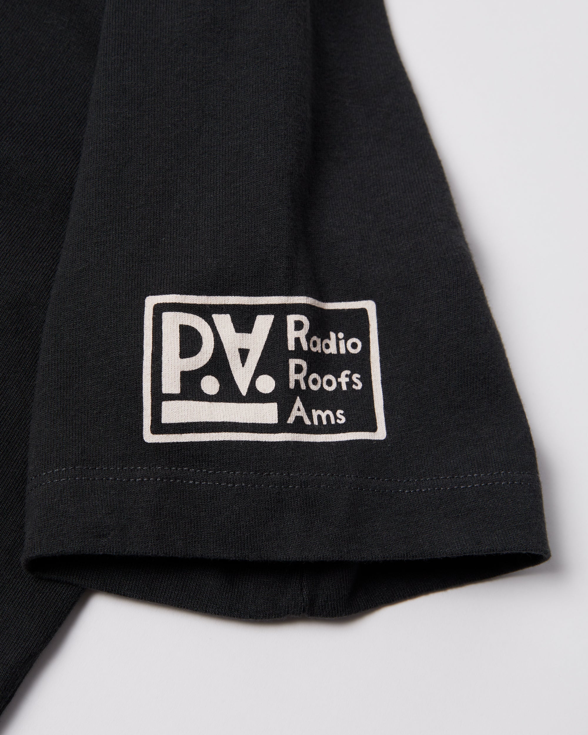さまざまなParraロゴを組み合わせたデザインを、抜染プリントの上から水性スクリーンプリントで施しています。