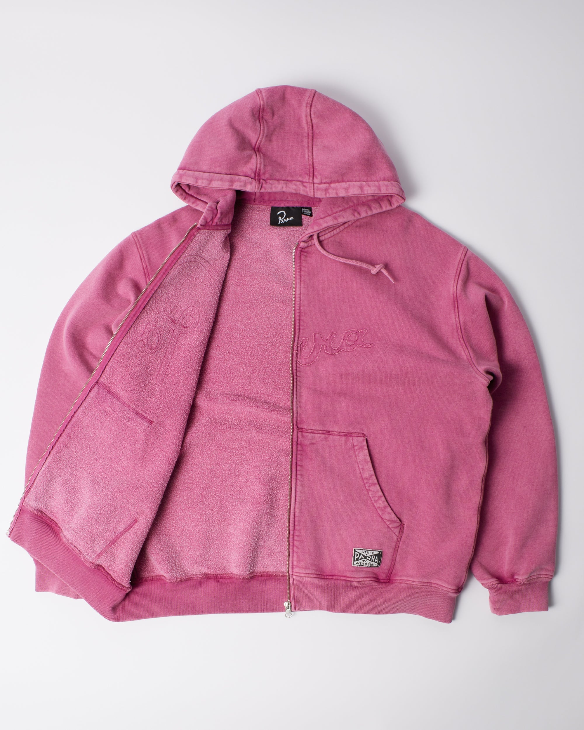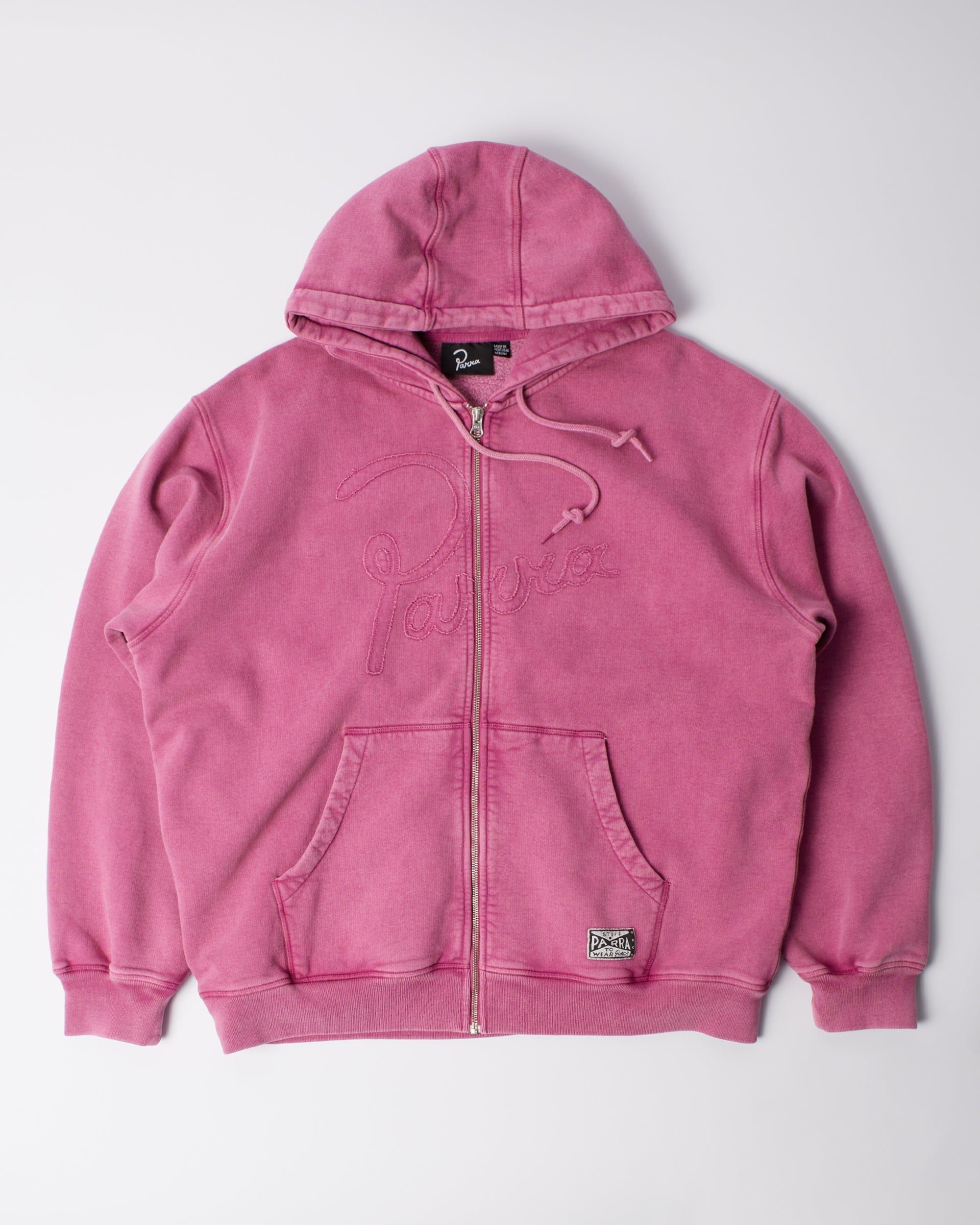 フロントにシグネチャーParraロゴを共地のアップリケで施したジップアップフーディー。すべてのスウェットシャツはボクシーカスタムフィットです。ご注文前にサイズガイドをご確認ください。