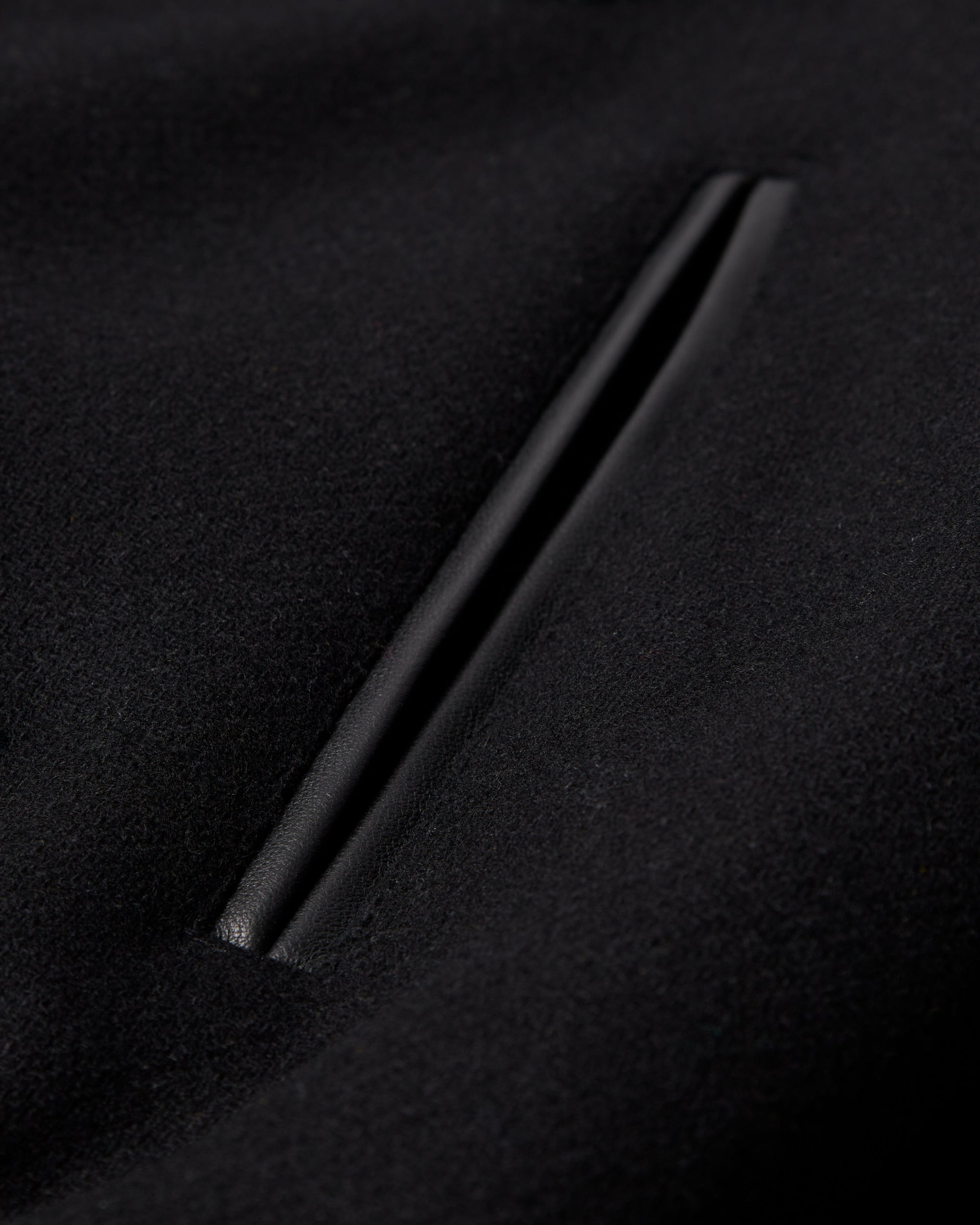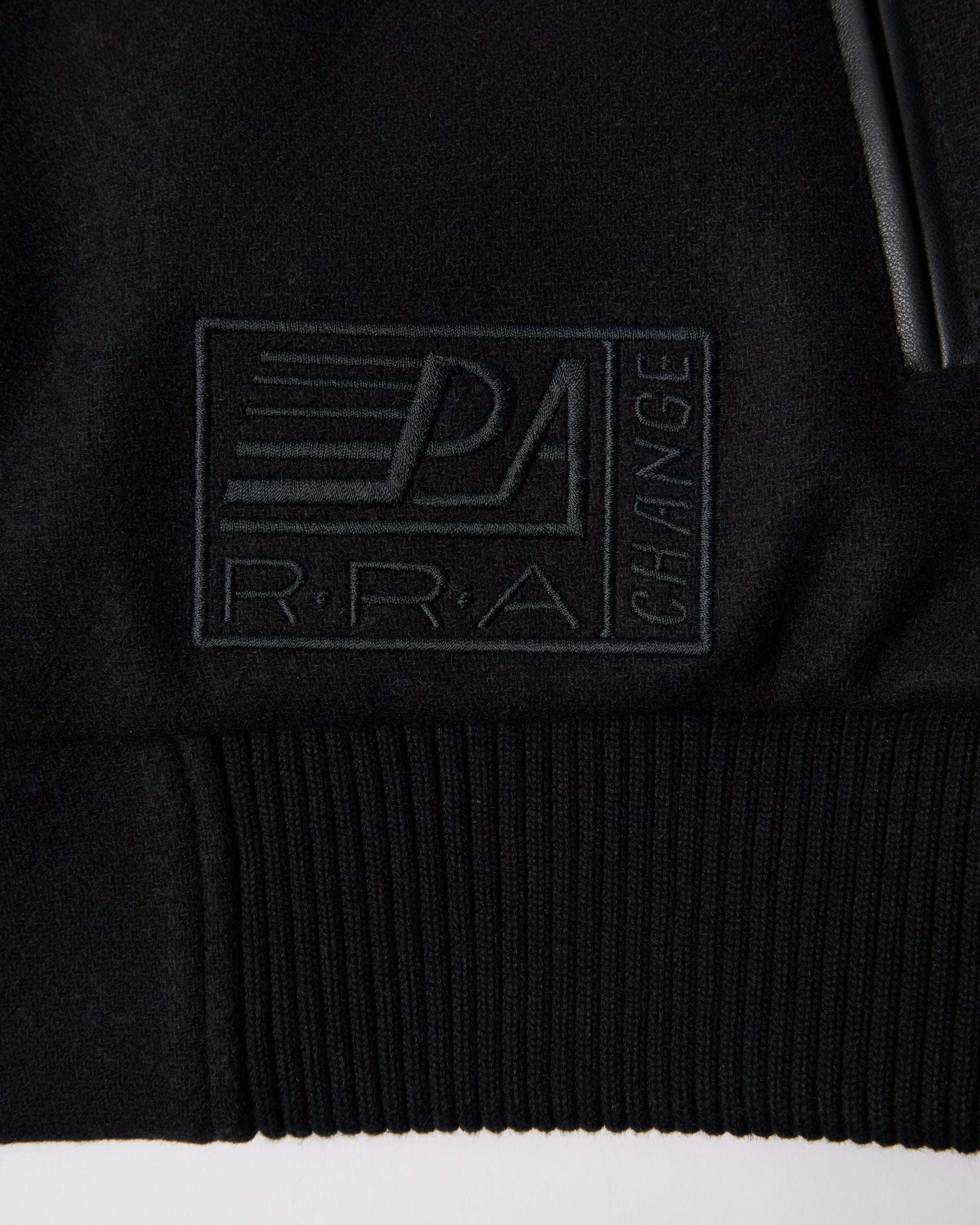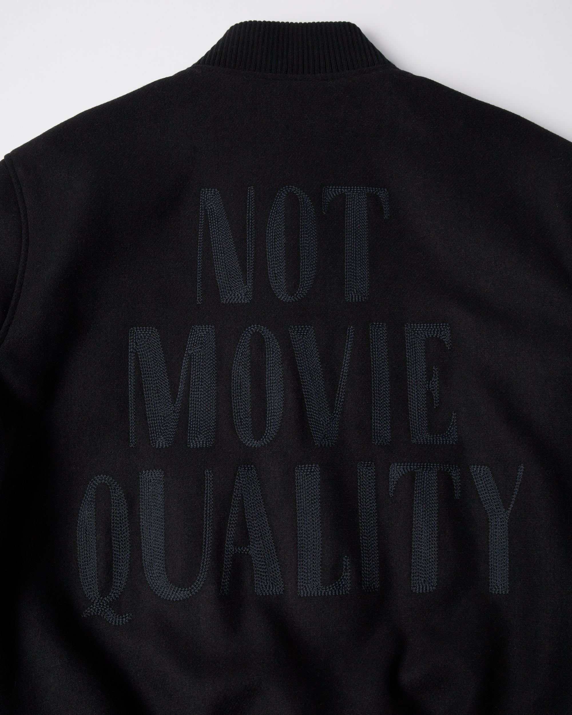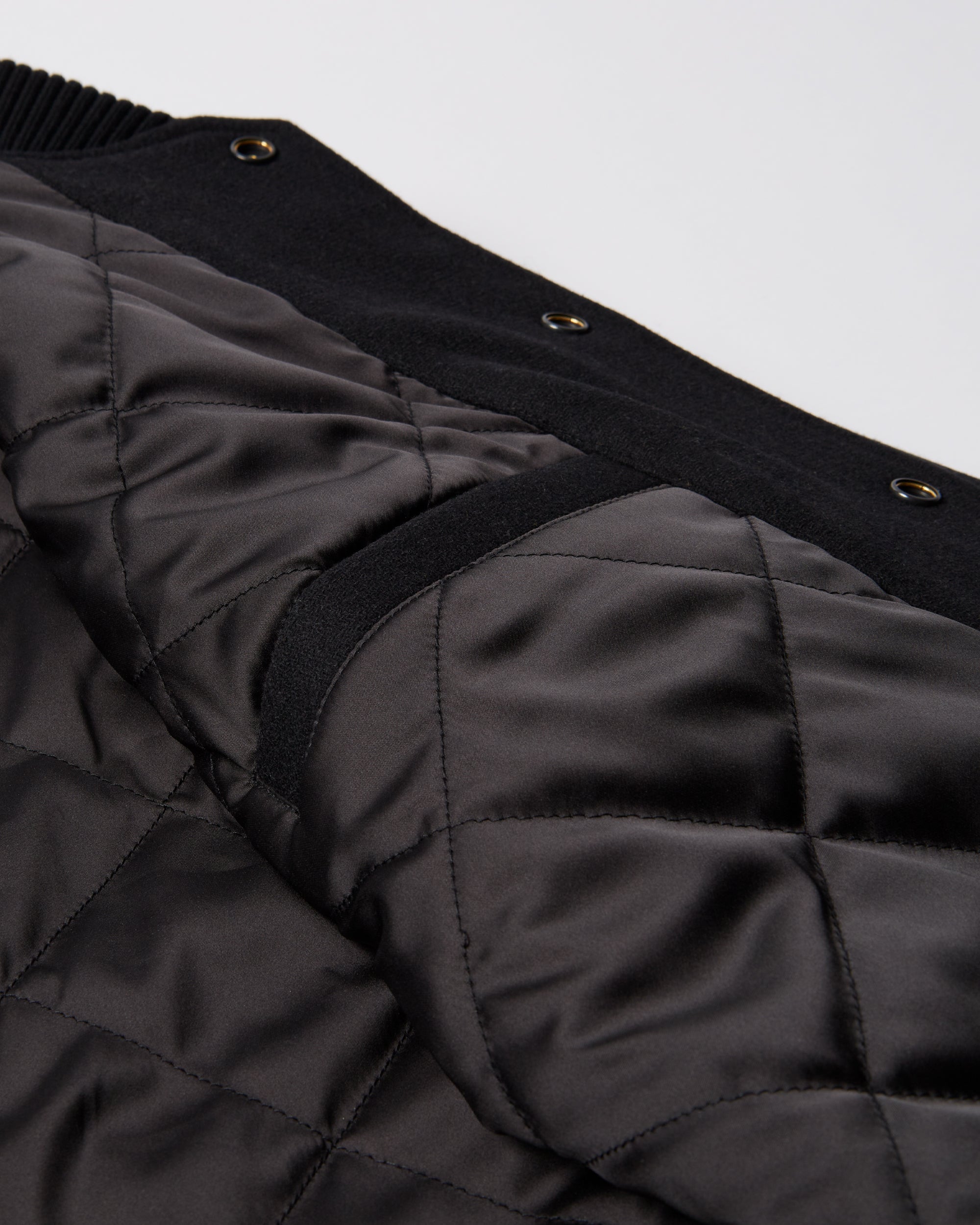ウールブレンド素材を使用したクラシックフィットのバーシティジャケット。トーナルカラーの大きな刺繍を全面に施しています。