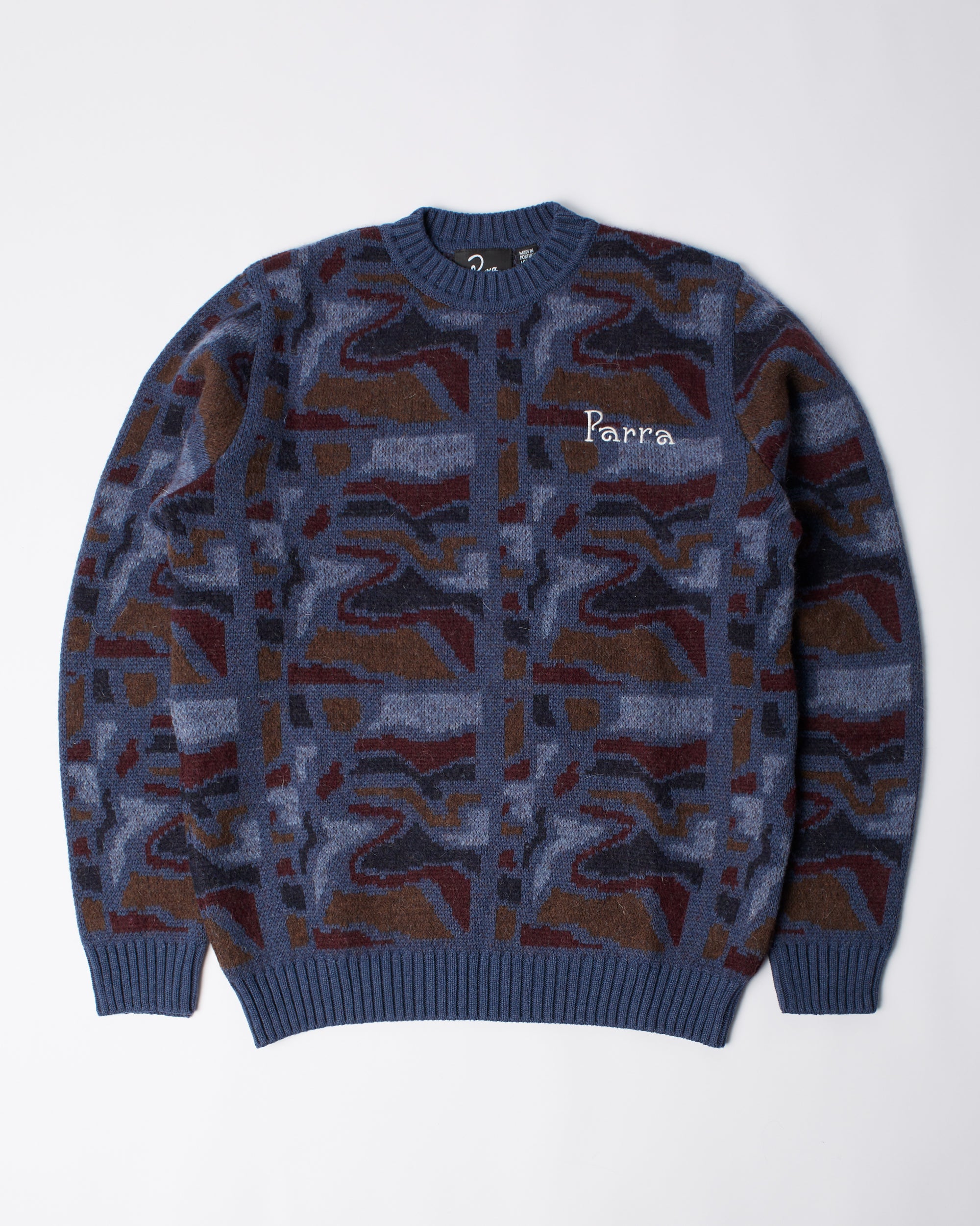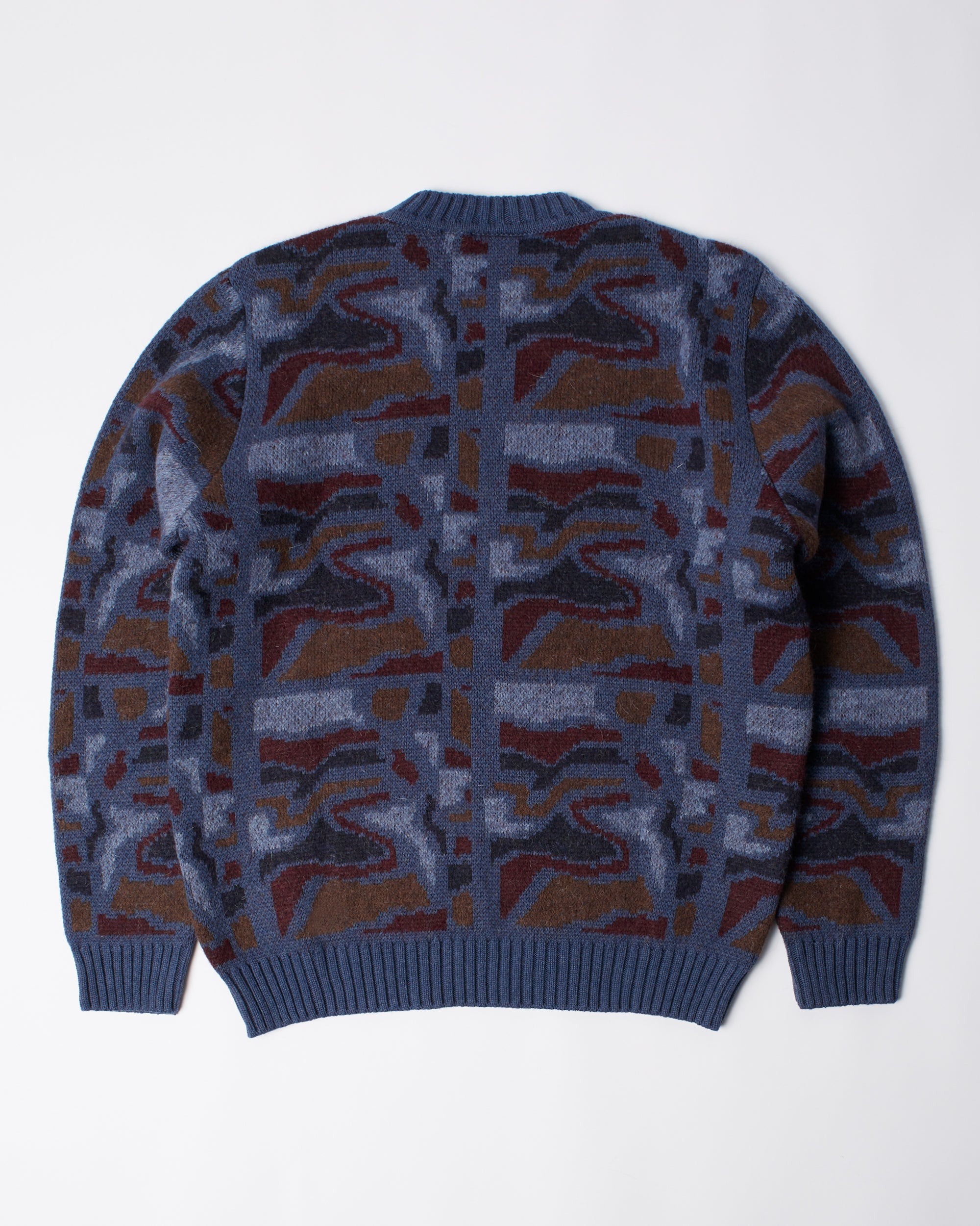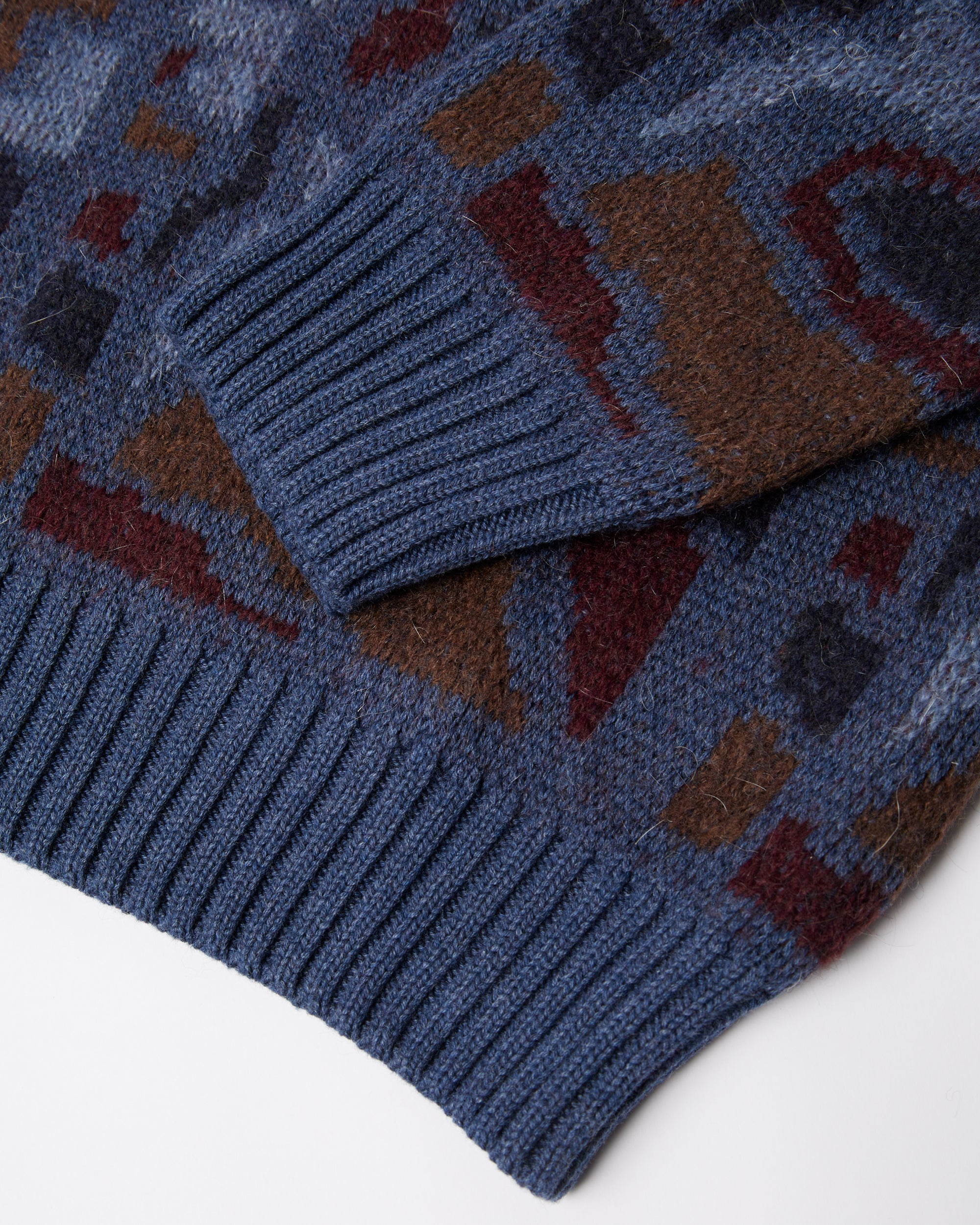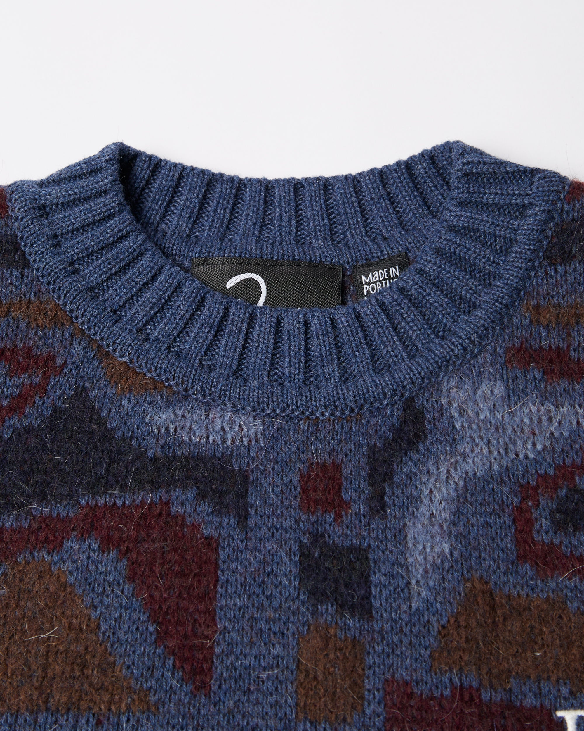 「Repeat ftp booster」のアートワークを全面にあしらったニットプルオーバー。胸元にWeird tradロゴの刺繍を施しています。