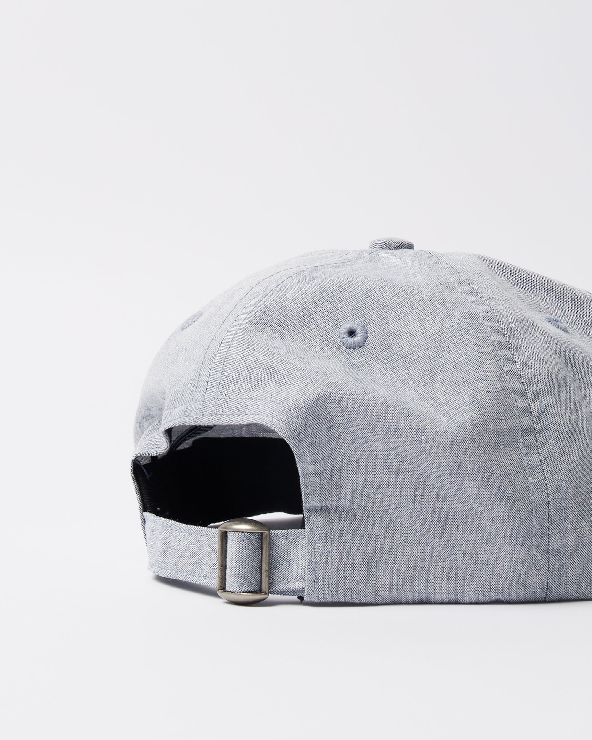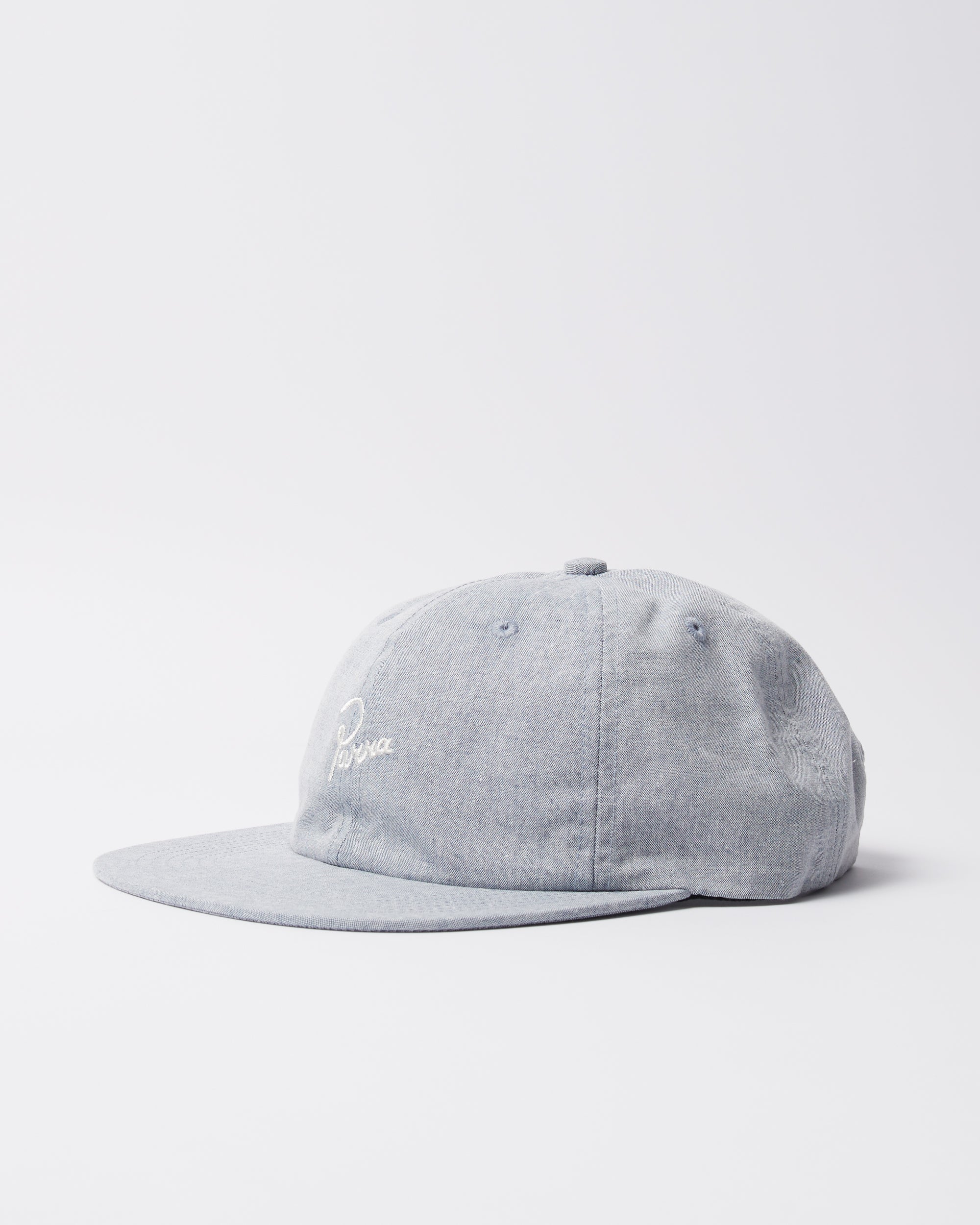 アンコンストラクテッド仕様のコットンシャンブレーハット。シグネチャーロゴの刺繍を施しています。