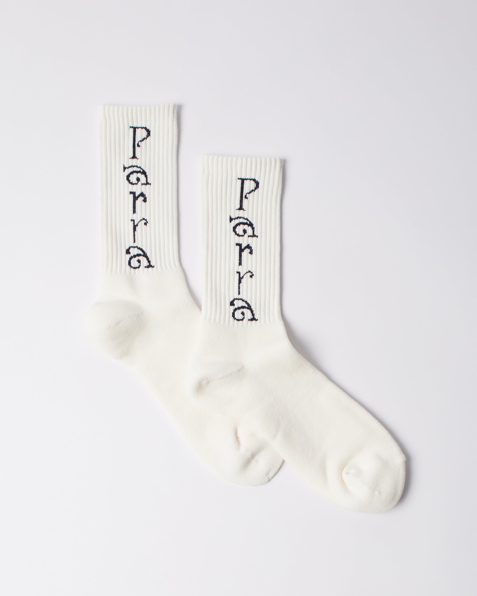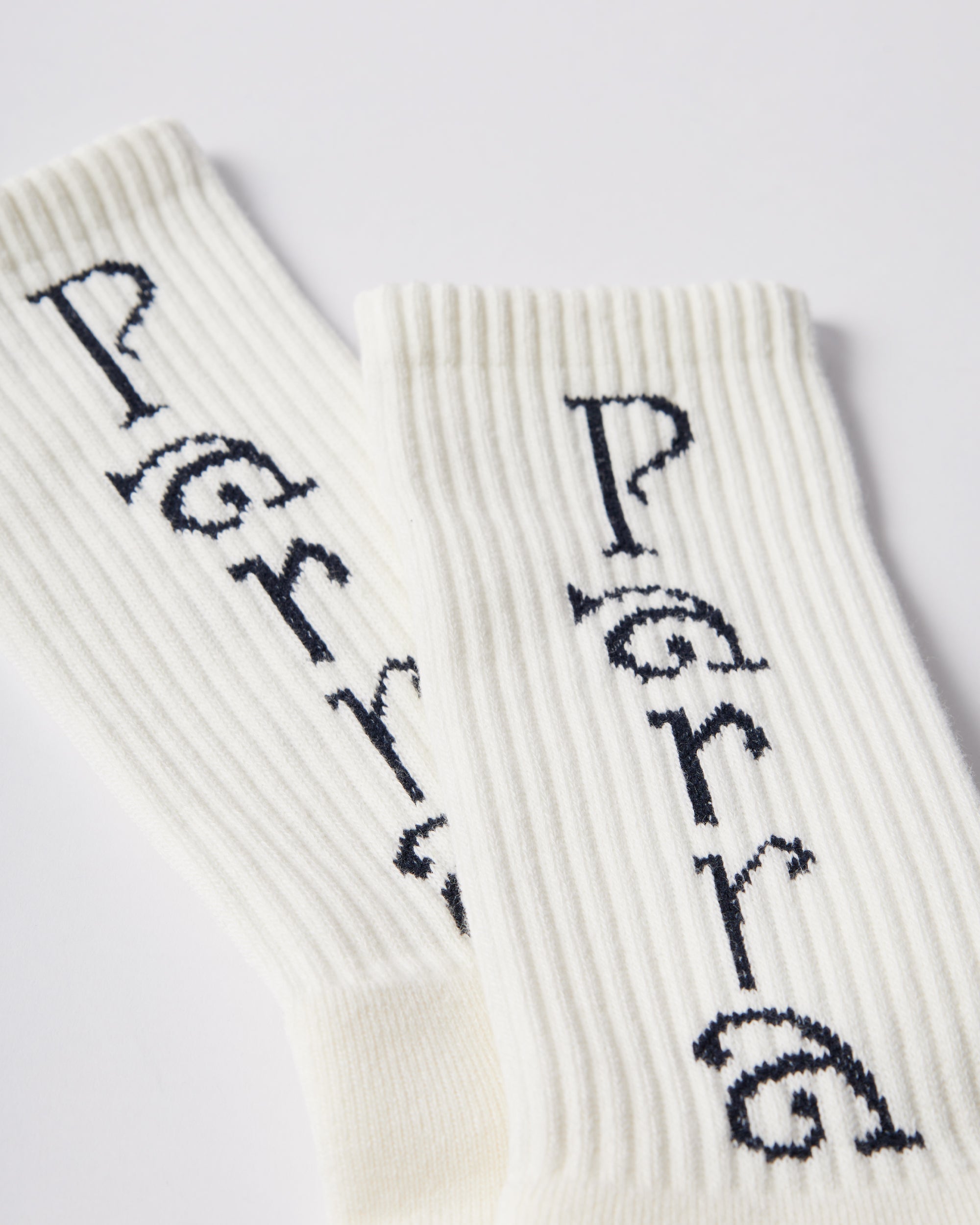 プレミアムファブリックブレンドのソックスに、「Weird trad」ロゴを両面にジャカード織りで施しています。東京でヴィンテージの丸編み機を用いて編まれています。